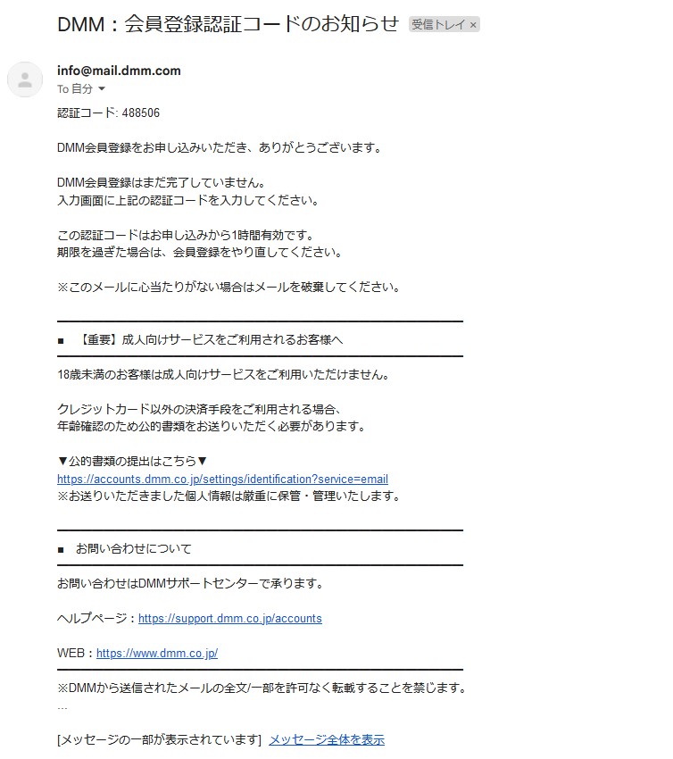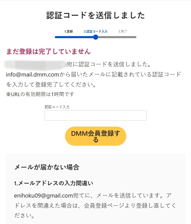 6.認証コードを先ほどのページに入力して「DMM会員登録をする」をクリックすると登録完了。